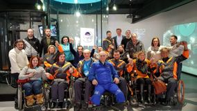 "Наш центр посетили участники проекта "Небо, открытое для всех" Российского спортивного союза инвалидов. Хотя инвалидами их назвать не поворачивается язык - в нашей трубе в потоках воздуха парили сильные, целеустремленные и волевые люди. Мужчины и женщины разных возрастов со всей страны объединяет любовь к небу. Все они готовятся совершить прыжок с парашютом в тандеме в рамках проведения III международного спортивного парашютного фестиваля "HandiFly Challenge". А перед этим серьезным покорением неба приехали к нам - отработать навык.